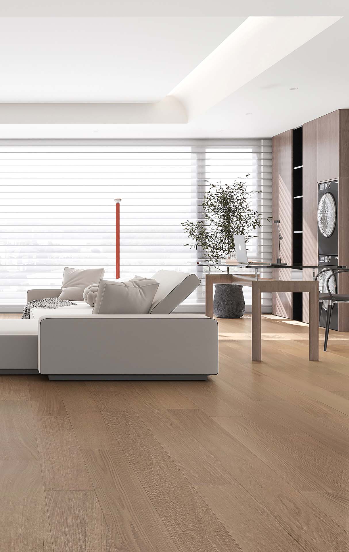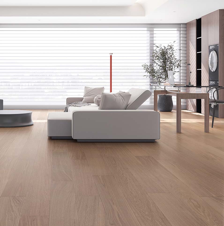 • Stability: The core layer of engineered wood flooring adds stability and reduces the risk of expansion and contraction due to changes in humidity and temperature. This makes engineered wood flooring suitable for environments where solid hardwood might be less ideal, such as basements or rooms with fluctuating moisture levels.